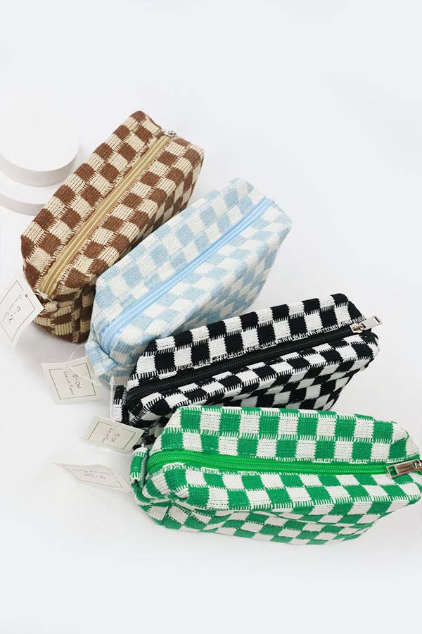 Checkered Knitted Cosmetic Bag Makeup Pouch Roomy Zipper Pouch Portable Travel Toiletry Bag Organizer For Girls And Women Gift -Premium Quality -Individual package -Size: 6.5 x 4 x 2.5 Inch -Fabric Content: Polyester